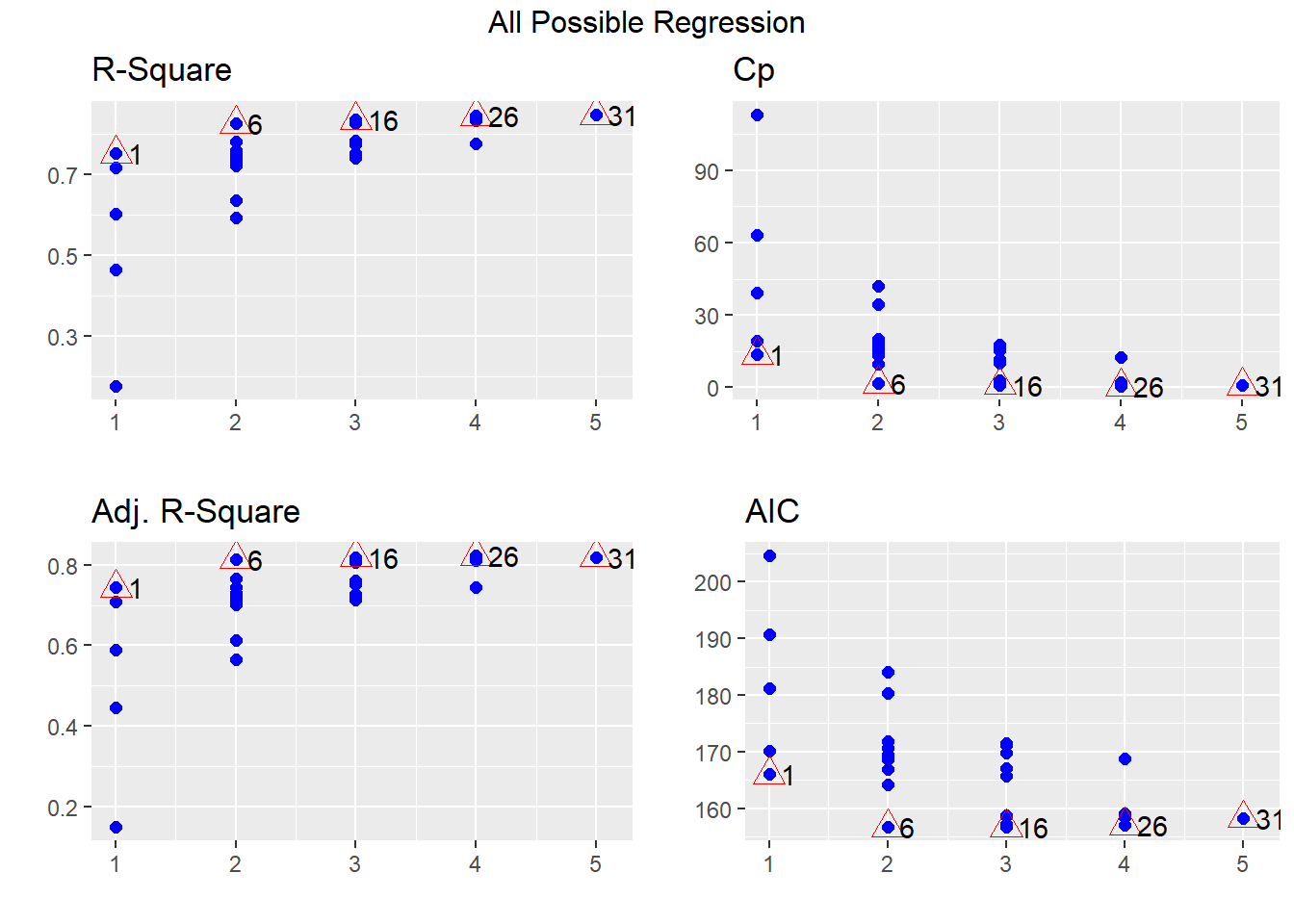 Index N Predictors R-Square Adj. R-Square Mallow's Cp
