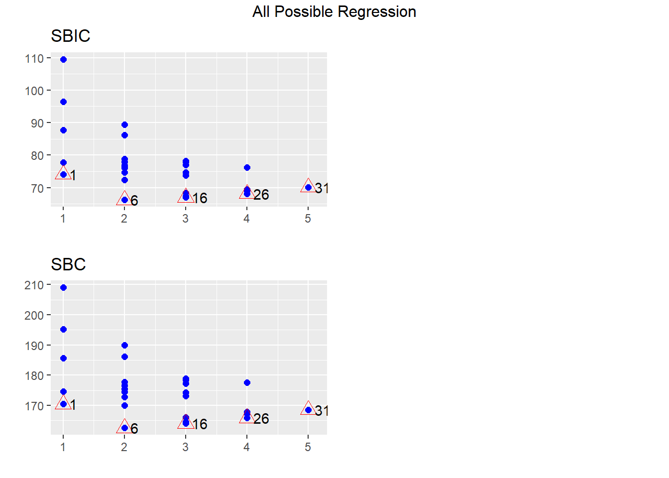 Model R-Square R-Square R-Square C(p) AIC SBIC SBC MSEP FPE HSP APC
