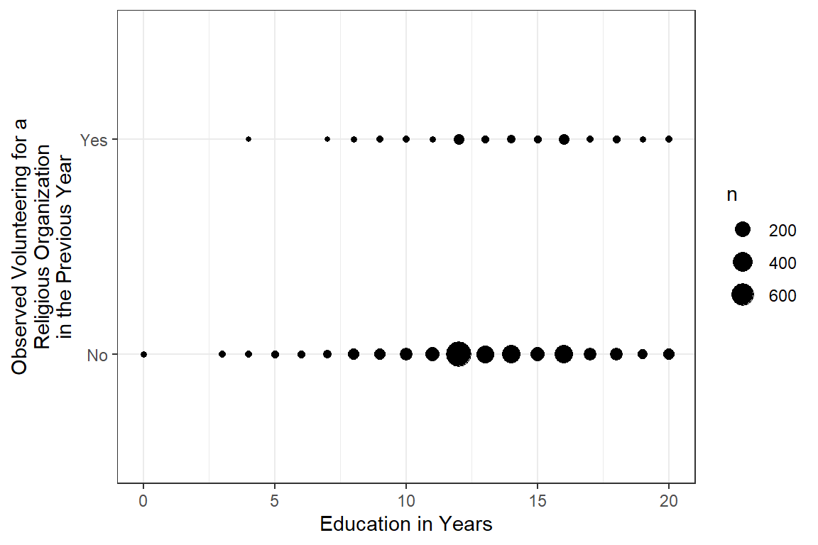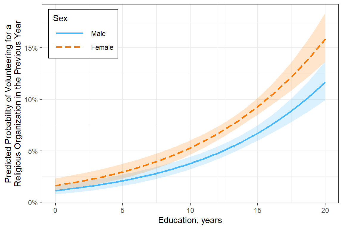 y = "Predicted Probability of Volunteering for a\nReligious Organization in the Previous Year") +
