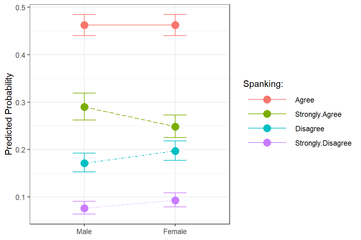 title = "Adjusted Predictions: Strongly Agree Spanking is Appropriate")