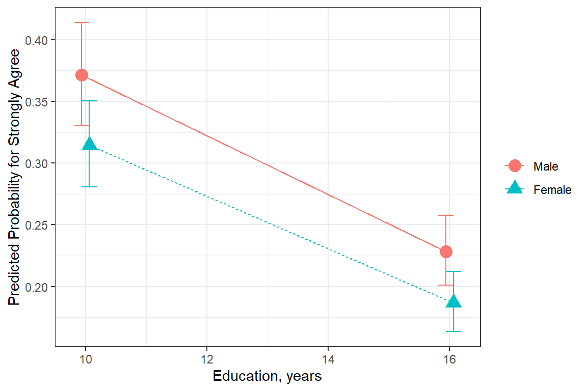 y = "Predicted Probabilit for\nResponding 'Strongly Agree'",