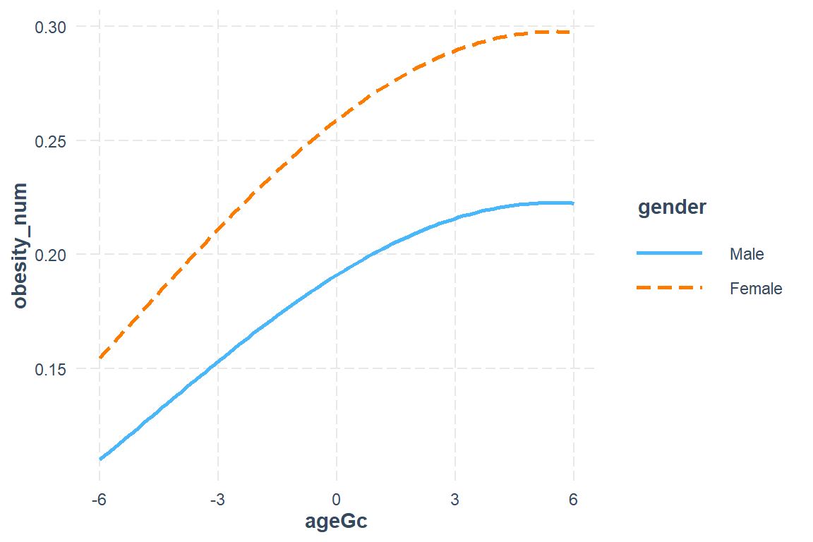 fit_glmm_1: obesity_num ~ ageGc * gender + I(ageGc^2) * gender + (1 | id)