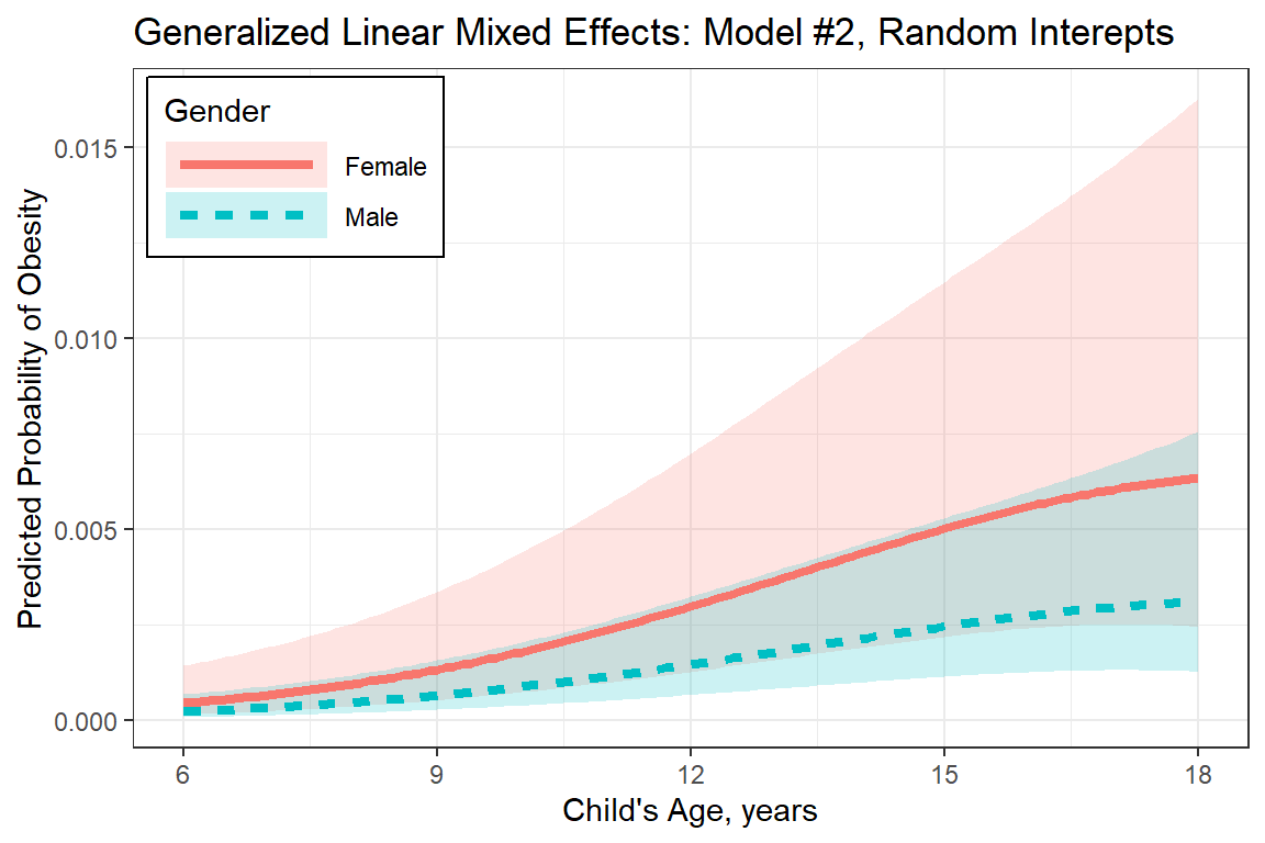 labs(title = "Generalized Linear Mixed Effects: Model #2, Random Interepts",
