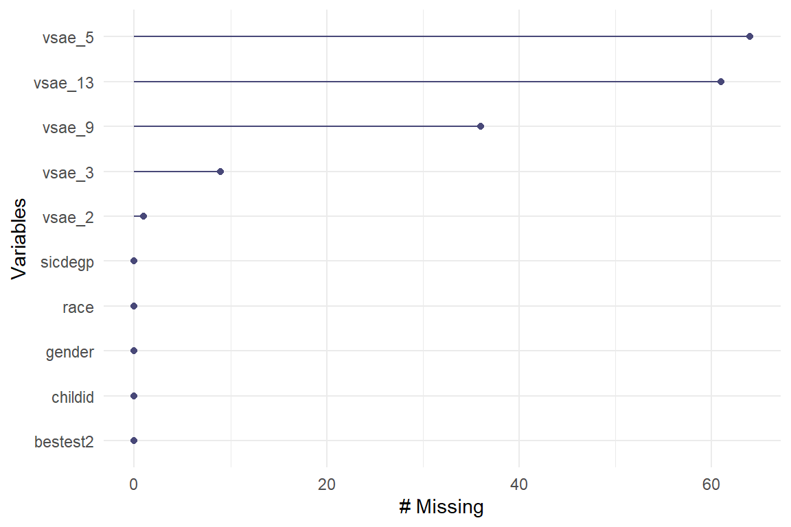 apaSupp::theme_apa(caption = "Part of the Dataset")childid | gender | race | bestest2 | sicdegp | obs | age | age2 | vsae |